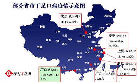 中国政府・国家衛生計画生育委員会によると、4月における手足口病により死亡が確認された人は70人で、3月の34人と比べて大幅に増加した。感染者は3月の約2.78倍の42万6347人だった。