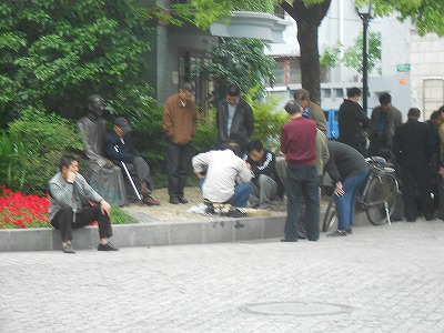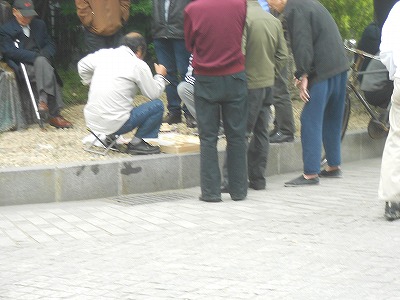 ↑公園や小区の中にあるこの手のテーブルに