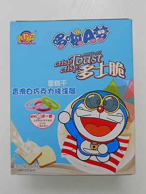 この中国のドラえもんラスクはくどい甘さが特徴的。