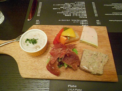 フォアグラのテリーヌ、イベリコ豚の生ハムなどを盛り合わせた前菜だそうです。