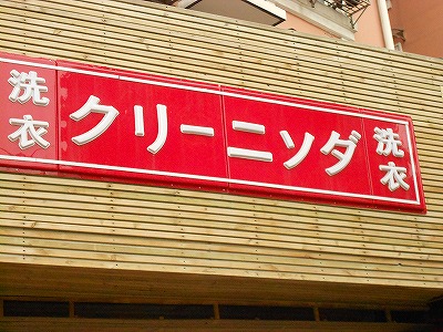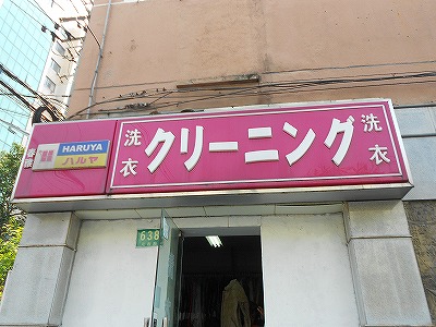 ピンク色の看板に、「クリーニング」という文字が目印です。