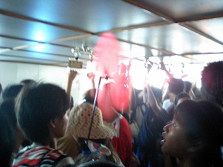 国慶節だからなのか、普段もこうなのか、船の中は人でいっぱいでした。
