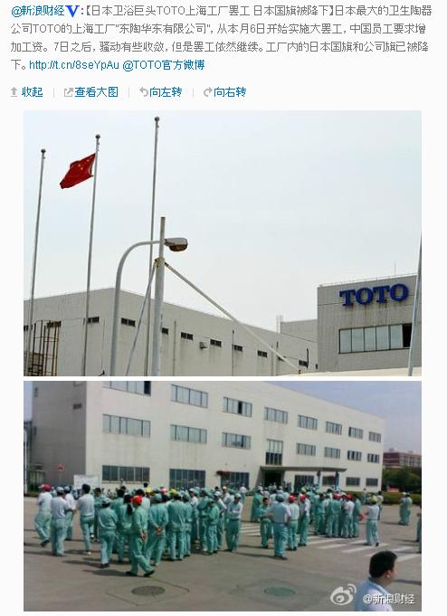 同工場の従業員らは賃金を下げられたことに不満を示し、1000人以上によるストにまで発展。工場内の監視カメラが壊され、日本国旗が燃やされるなどの過激な行動も伝えられている。