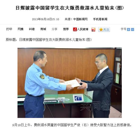 日媒披露中国留学生在大阪勇救溺水儿童始末 (中国語)