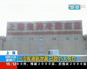中国・上海市郊外の宝山区で31日午前11時ごろ、冷凍倉庫から液体アンモニアが漏れ出し、15人が死亡、26人が病院に運ばれた。上海市によると、うち6人が重体という。