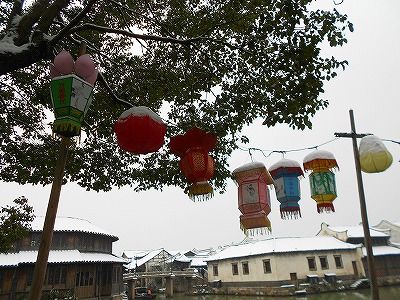 荷物をホテルに置いた後、雪がしんしんと降る烏鎮を散歩します。