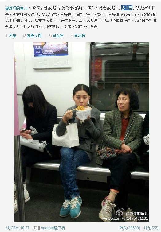 「この麺を食べている女を写真に撮って微博で晒そう!」