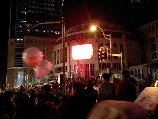 カウントダウンといっても、今年は地下鉄工事のため大規模なものではなく、スクリーンに映し出される映像を見ながらのものでした。