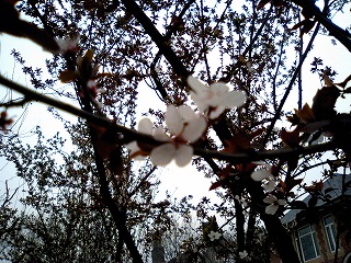 ポカポカ陽気だったので、のんびり歩いて帰っている途中、桜が咲いているのを見つけました。
