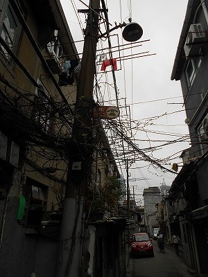 電話線なのか蔦なのか洗濯紐なのか芸術なのかわからないのですが、よく見ると、