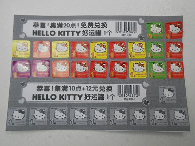 ↑上海ファミリーマート(全家)のハローキティーキャンペーンのシールをいただきました!