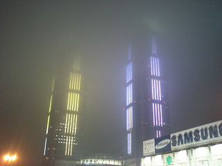ボヤーっとした夜、ビルの灯り。