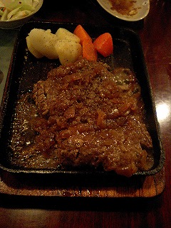 炭火でじっくり焼いたつなぎなしのハンバーグ。
